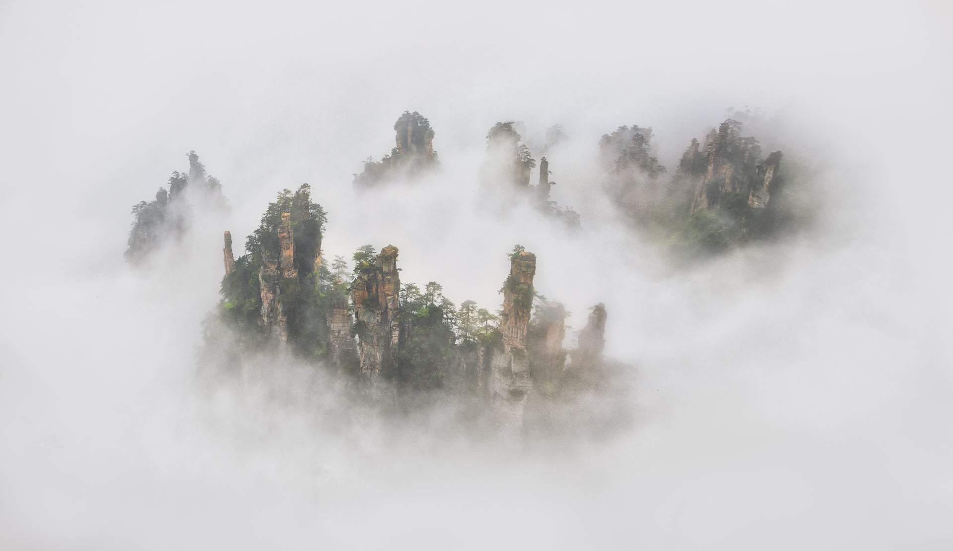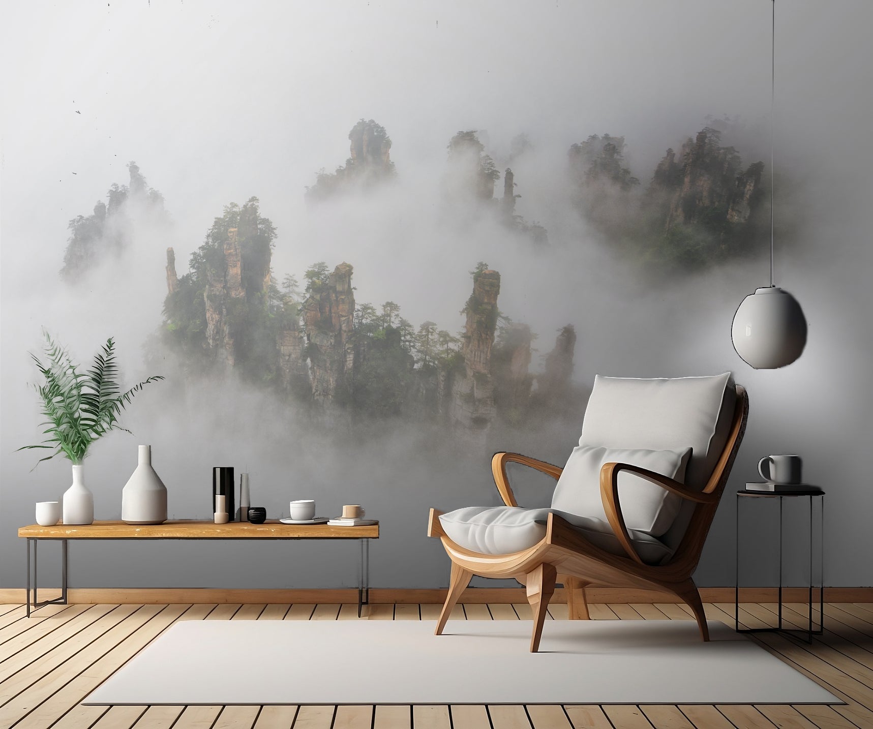 Med "Zhangaije" får du inte bara en fantastisk bergsutsikt utan även en tapet som är skapad med omsorg. Roberto Marchegiani är den begåvade skaparen bakom denna väggkonst. Med hans expertis och känsla för detaljer blir varje bergsformation och klippa levande, varje dimma och dis känns verklig.